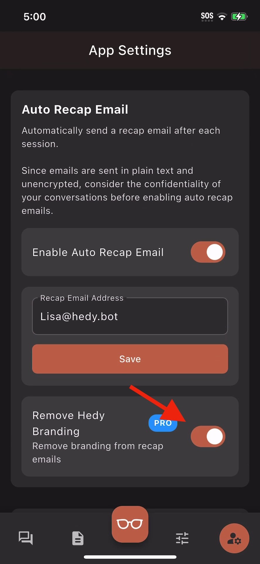 Toggle on “Remove Hedy Branding” (Pro feature)