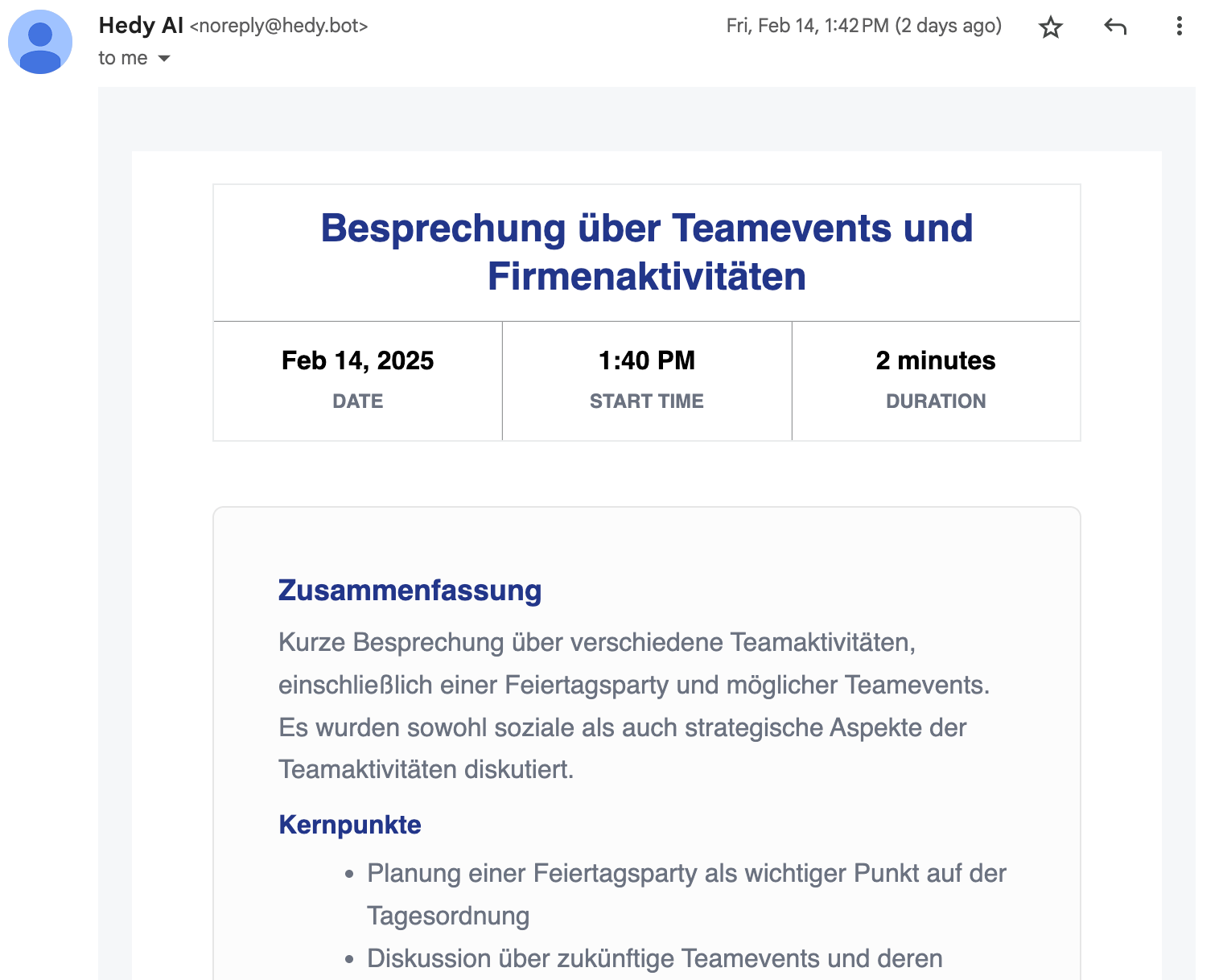 Auto Recap Emails are a convenient way to receive summaries of your Hedy sessions. Pro users can customize these emails by removing Hedy branding for a cleaner, more professional look.