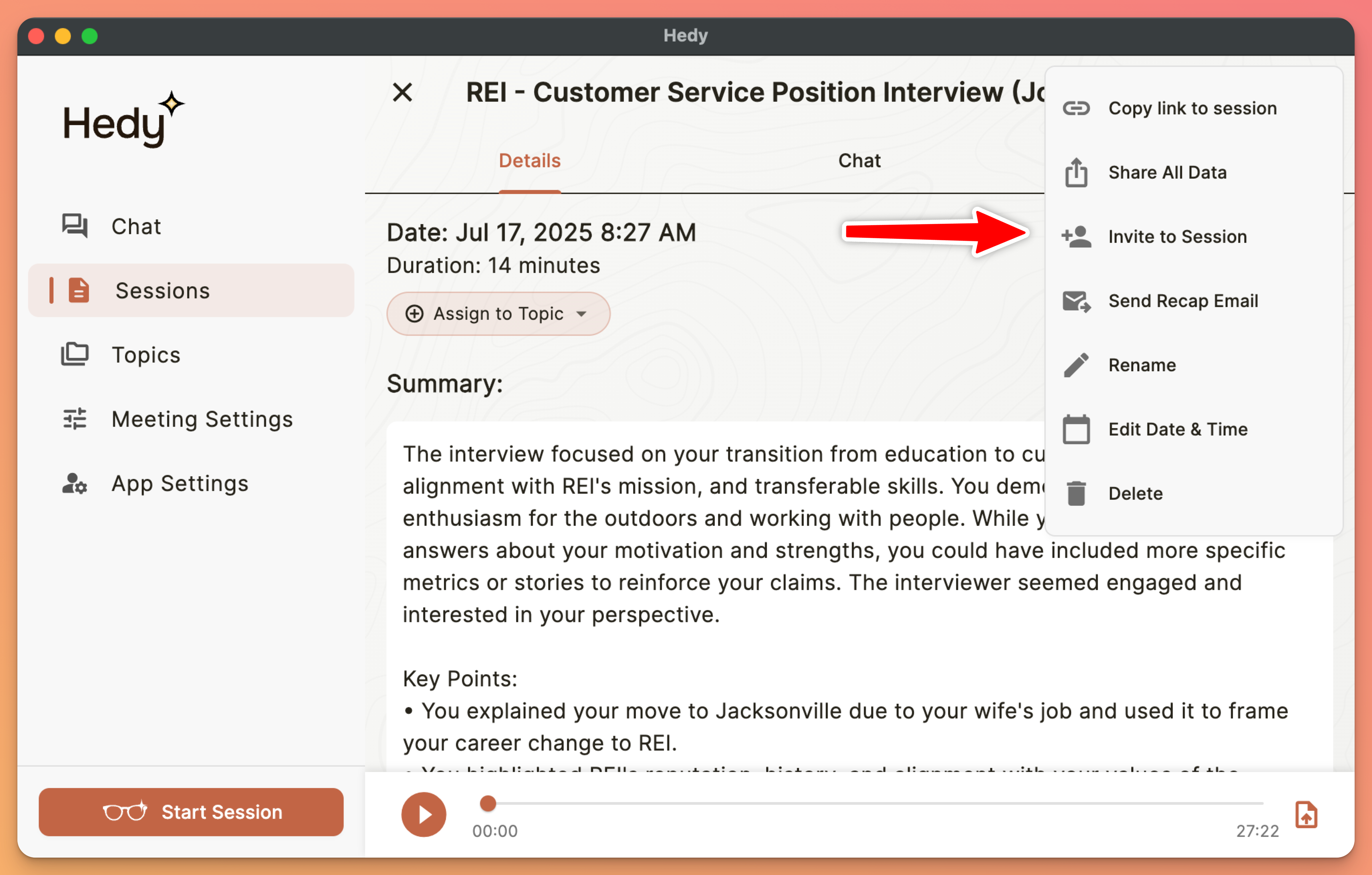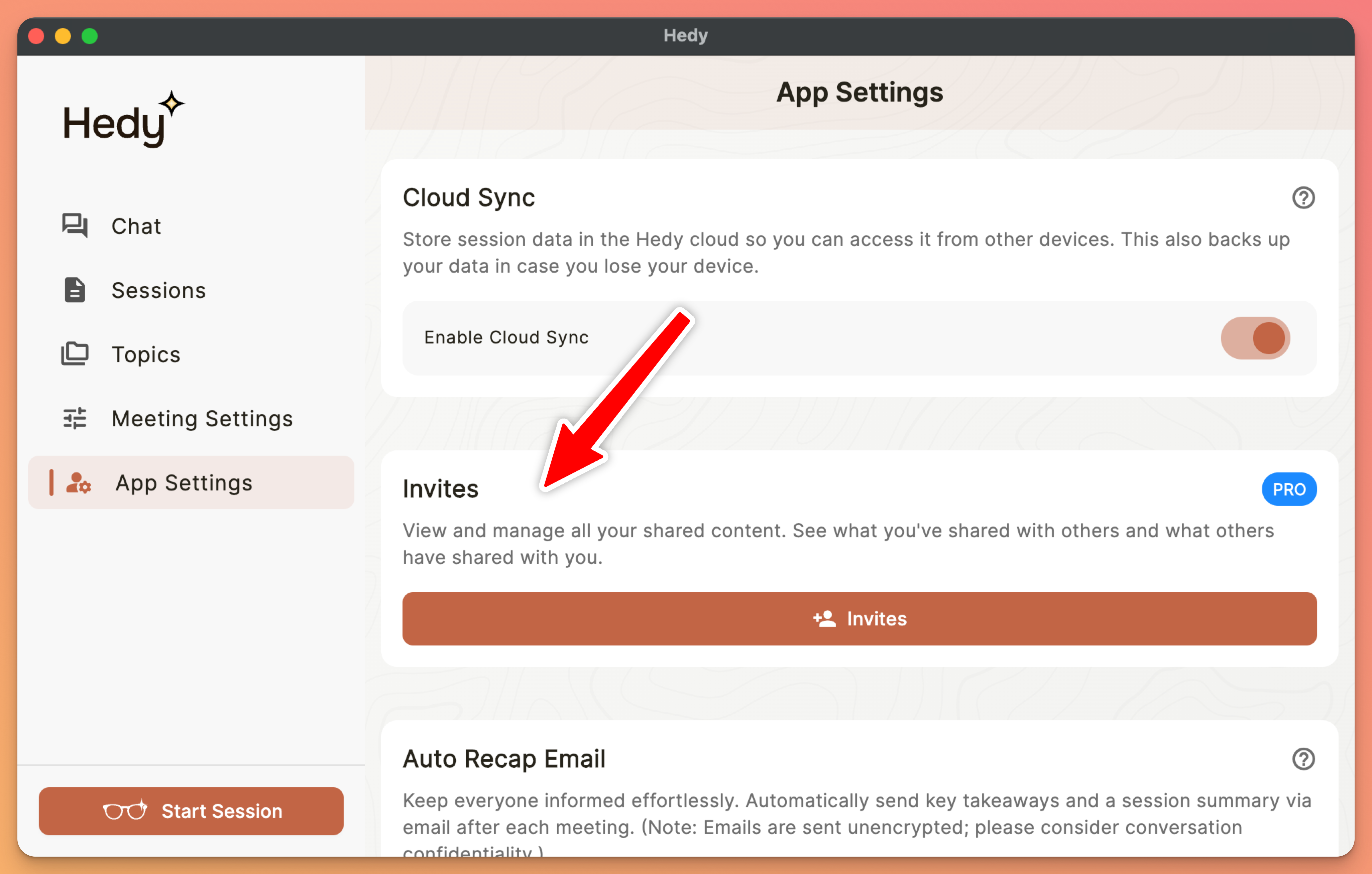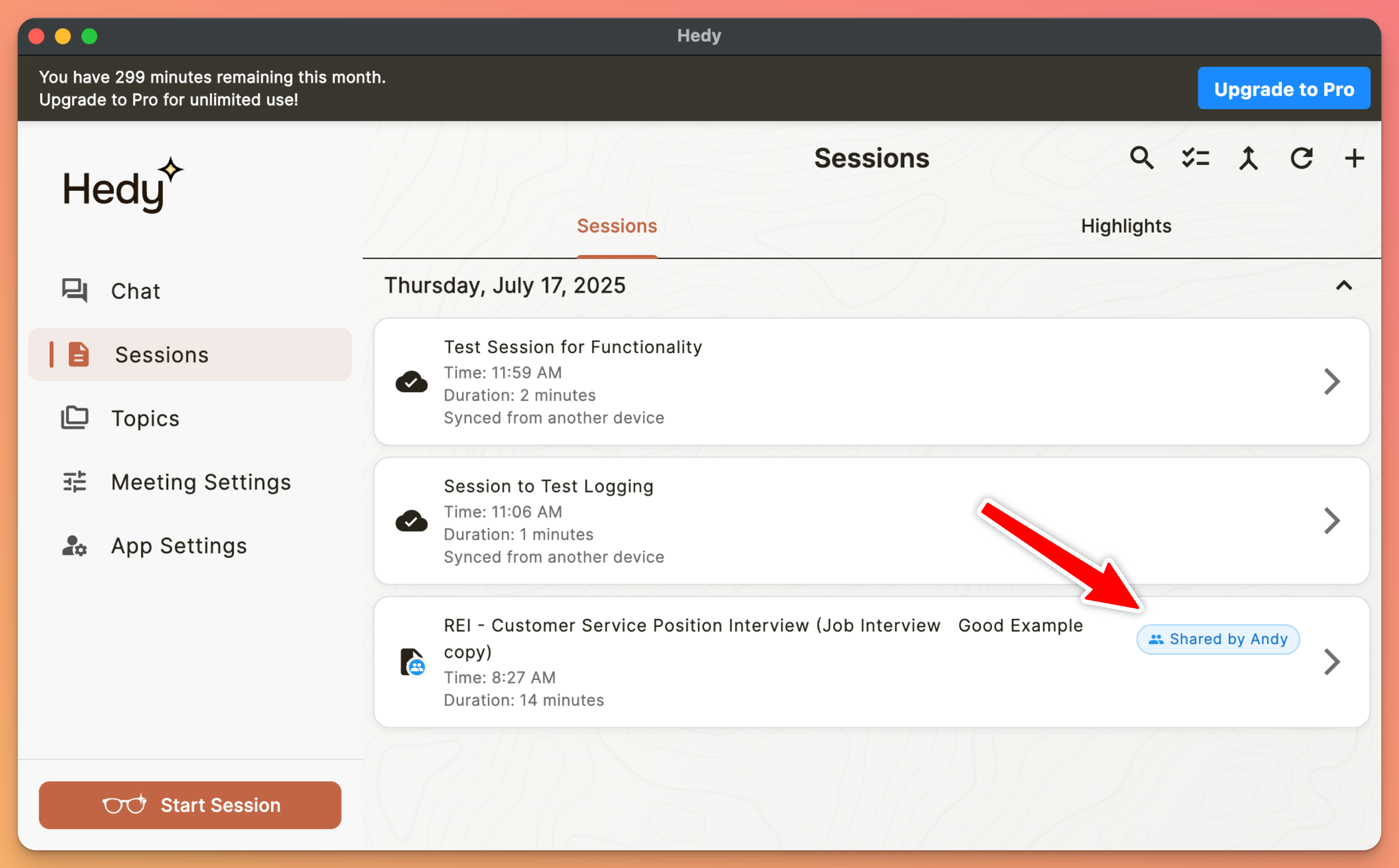 Hedy will upload just that session to the cloud for sharing